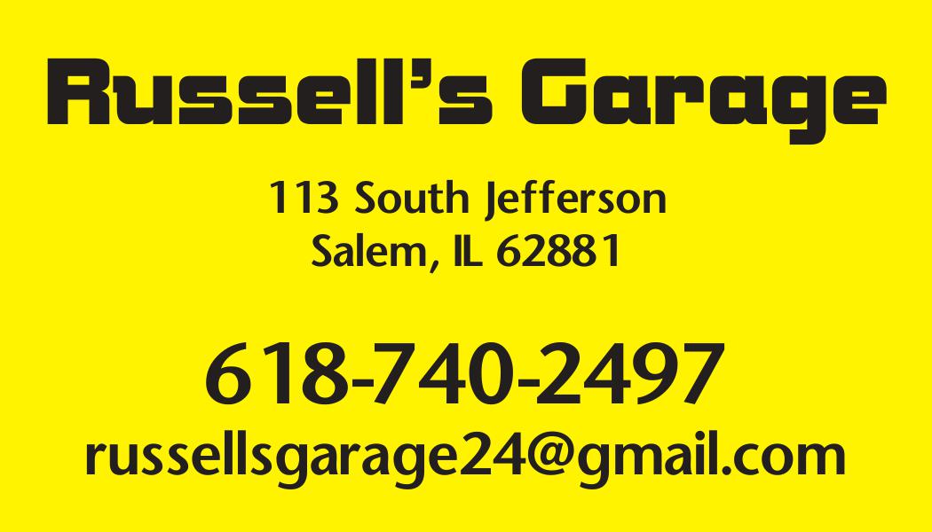 At Russell’s Garage, we ensure your vehicle is ready for the road with expert services and a commitment to excellence. We are a new automotive shop located in Salem, Illinois. Bringing competitve pricing and excellent service to our area! We are located on 113 South Jefferson in Salem, Illinois.